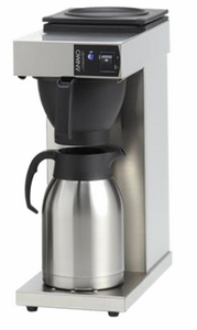 В нижней части аппарата находится мощный ТЭН, в который вставляется полая трубочка. В верхней части — жесткий встроенный фильтр-ситечко с мелкими ячейками, куда засыпается чай или молотый кофе. Профессиональная гейзерная модель. Подключение: 1-фазное 220 В. Мощность: 1,5 кВт. Габариты (ШхГхВ): 220 х 220 х 400мм. Материал корпуса: нержавеющая сталь.